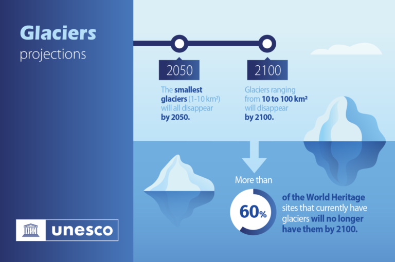 “UNESCO Dünya Mirası buzullarının üçte biri iklim değişikliği sebebiyle 2050’ye kadar yok olacak. Buradaki tek umut ışığı, küresel sıcaklıklar sanayi öncesi döneme göre 1.5 dereceyi aşmazsa buzulların kalan üçte ikisi kurtarılabilir. Gelecek nesiller için bu önemli yerlerin acilen koruma altına alınması gerekiyor.”